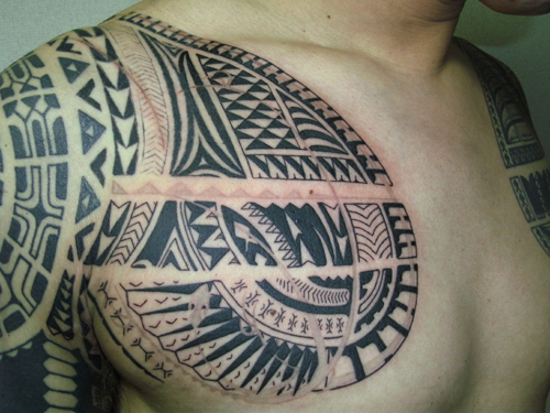 ん~~。。(  ̄д ̄;) 投稿日時: 2013/02/24 投稿者: tetu なかなか進まなかったぜい。。(-”-;) いつもきて下さるお客さまで、 自分以外にも他で入れられたトライバルが入っていらっしゃいますψ(。。) 肩と左側にも、他で入れられたTATTOOがあり〆(°°) 胸のデザインも、違和感のないようなデザインとバランスに致しましたφ( °-°)/ けっこう進むかなぁと思ったのですが。。なかなか進みませんでした¢(・_+) じかいで、完成です(”;)φ 長い時間お疲れ様でした^^ また、よろしくお願い致します^^ Tweet