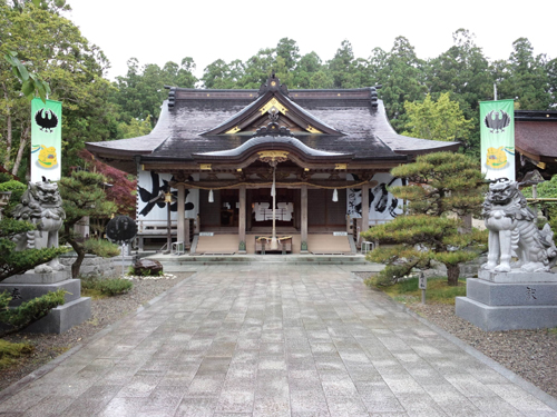 拝殿や上三殿、八社殿の鈴門には皇室縁の菊の御紋に八咫烏。