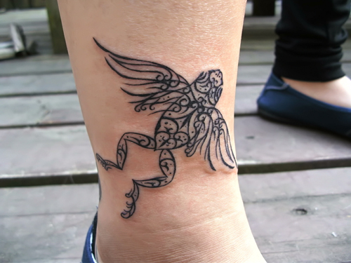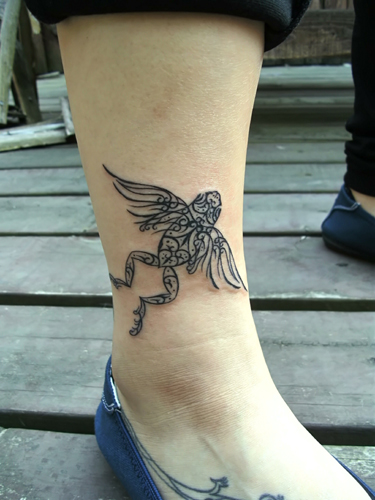 カエルも、翼も、デザインや入れる場所に合わせて。左右対称にはあえてしていないです(φ(-ω-)