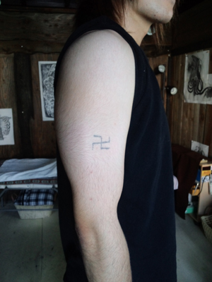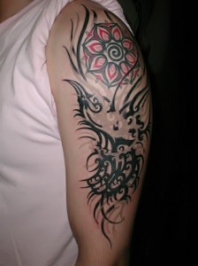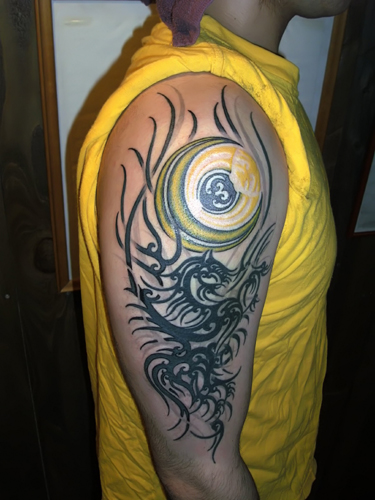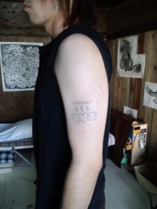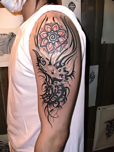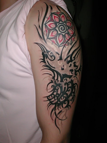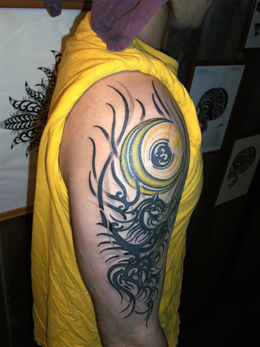 反対側の腕は、太陽と鳳凰のトライバルですφ(*-.-*)