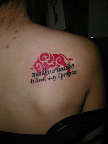 メッセージと赤い牛のトライバルですφ(・д・。)