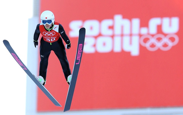 沙羅チャンもさ、 この、ソチのジャンプ台のなだらかで、アールのないジャンプ台トカ、。