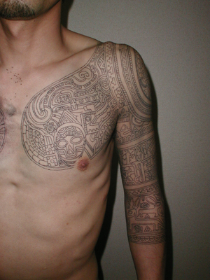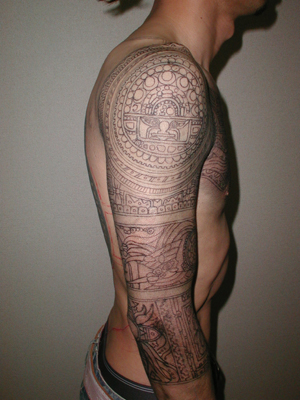 背中にアステカの「大陽の暦石」を入れられましたφ(。・c_,・。)