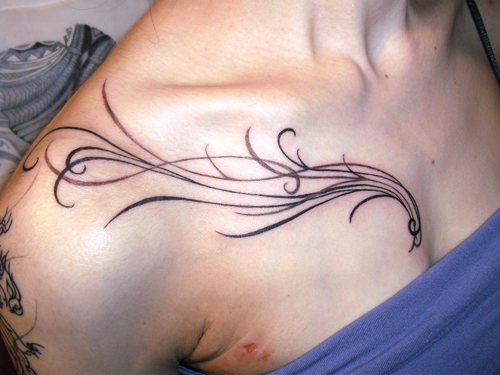 前回入れて下さったパンサーのトライバルに合った、胸半分のトライバルが希望のお客さまでした_(・・)φ