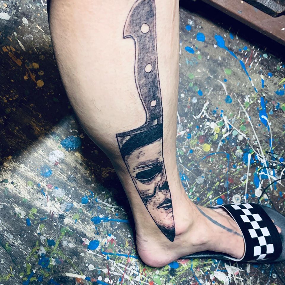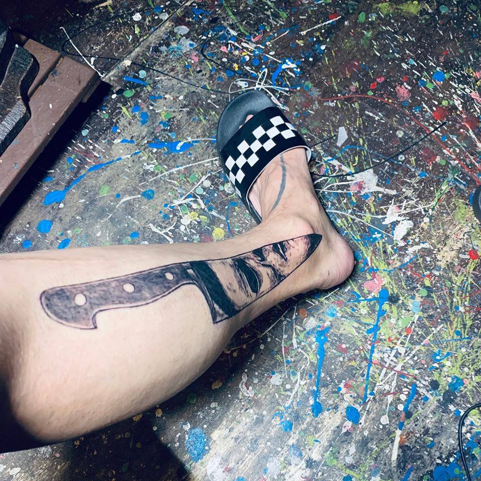 自足⚔️#Japanesesword #Japanese #sword #knife #weapon #ナイフ #Realstick #日本刀 #blackandgrey #tattoo #TETU #IN印 #chicanolettering #Tribal #tattoos #tribaltattoo #dot #dotwork #八戸 #青森 #tattoostudio #tattooartist #tattooart #tattoowork #chicanotattoo #chicanostyle