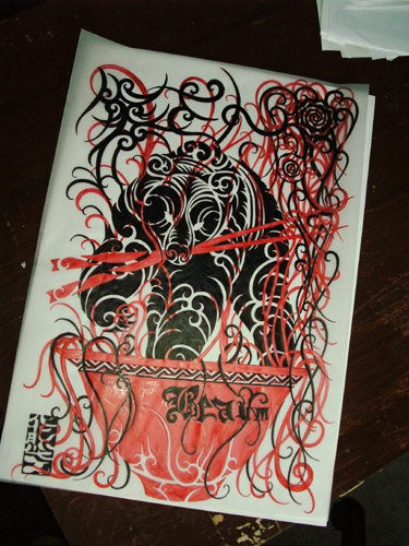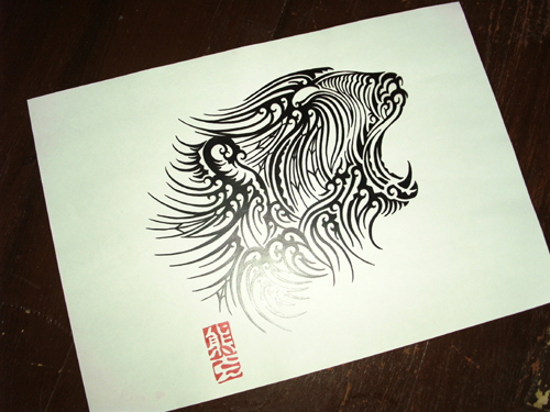 クマの上にトライバルで『熊さん』の文字をアレンジしてデザインを描きましたφ( ̄ー ̄ )