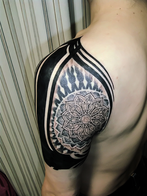 どんな刺青も、違和感のないようにトライバルMIXにデザインできます♪〆(◞≼⓪≽◟⋌⋚⋛⋋◞≼⓪≽◟*)ヨィ